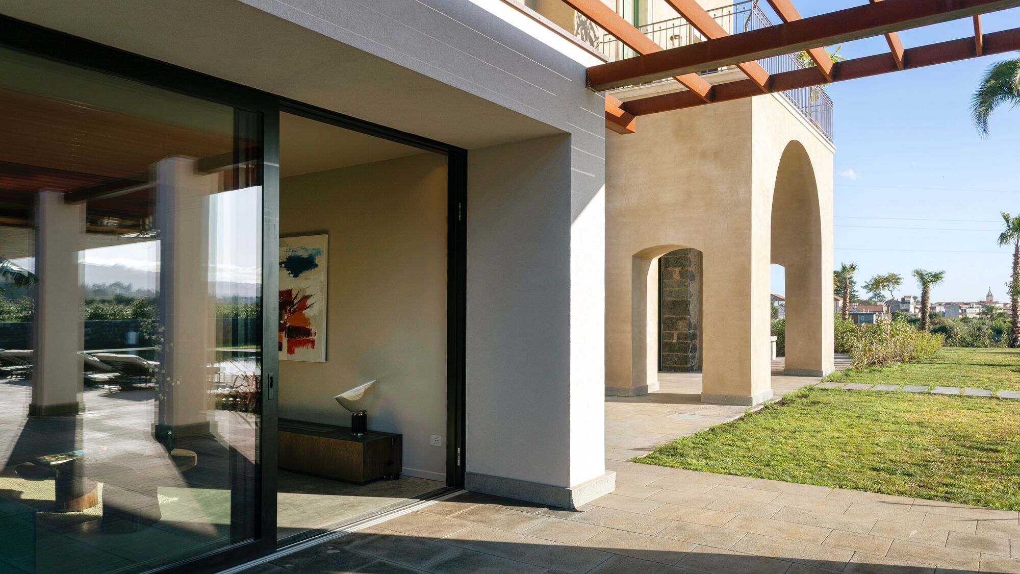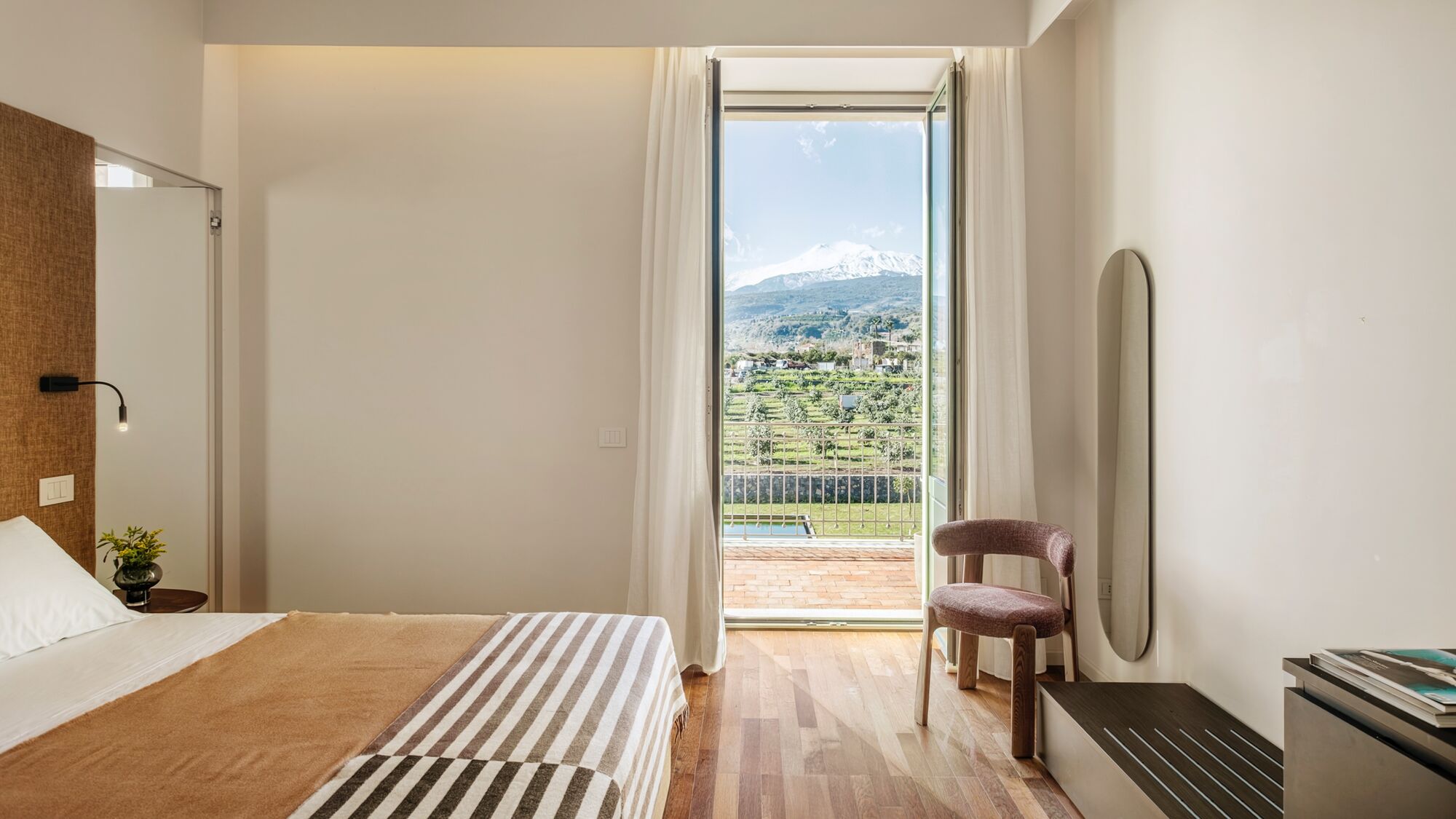 One of the highlights of your stay is sure to be spending time on the terraces with its comfortable seating and magnificent scenic views of Mount Etna;